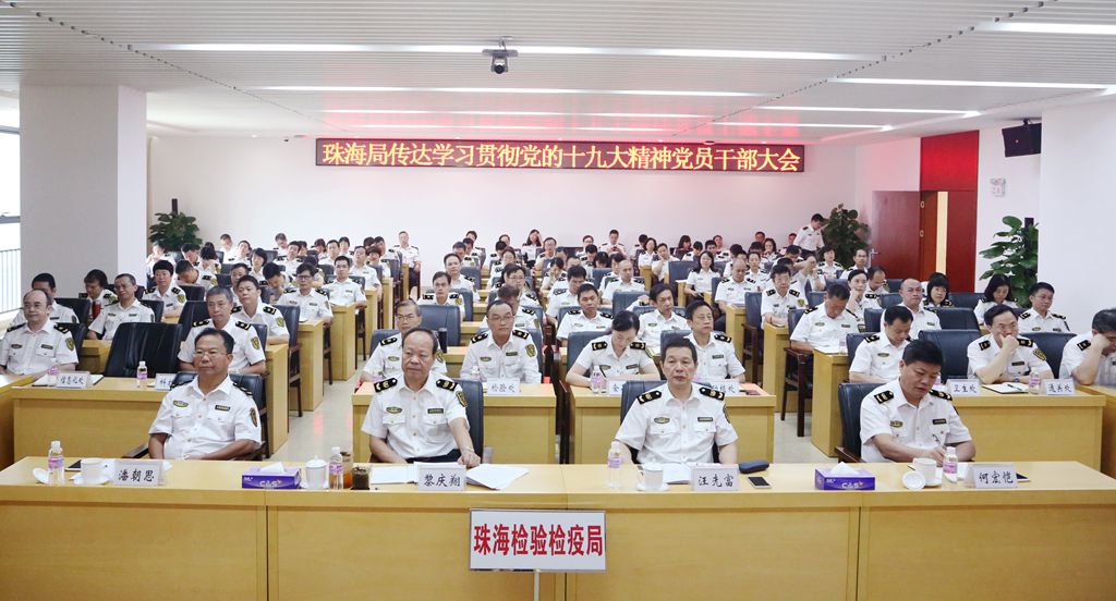 10月26日,质检总局召开全国质检系统党员干部大会,传达学习贯彻党的十九大精神。珠海局全体党组成员、全局科级及以上党员领导干部、各直属事业单位班子成员、协会和中检公司负责人约270人在珠海分会场参加。 质检总局局长、党组成员支树平从大会概况、主要精神和学习贯彻总体要求三大方面,传达并解读了十九大精神。他指出,党的十九大精神集中体现在“6个新”。一是“新成就”,过去5年取得的新成就,关键词是“历史性成就”和“历史性变革”。二是“新时代”,中国特色社会主义进入了新时代,这是十九大报告的主线。三是“新思想”,形成了习近平新时代中国特色社会主义思想,这是十九大报告的灵魂。四是“新征程”,“两个重要时期”和“两个阶段”,描绘了宏伟蓝图,为未来的发展指明了方向。五是“新任务”,明确了经济、政治、文化、社会、生态、国防和军队、“一国两制”和祖国统一、外交等六个方面的政策指导。六是“新要求”,全面从严治党,持之以恒抓好党的建设,不断提高党的执政能力和领导水平。他要求,各级党组织和党员领导干部要集中时间、集中精力,学起来、讲起来、干起来,迅速掀起学习宣传贯彻十九大精神的热潮。 质检总局副局长、党组书记候建国对学习贯彻十九大精神工作强调四点意见:一是迅速开展、学深悟透,各部门要研究具体措施、制定学习计划,集中时间、大力研讨,切实把思想和行动统一到十九大精神上来。二是用新时代中国特色社会主义思想武装头脑,深刻领会贯穿其中的理想信念和历史担当,走中国特色社会主义质量强国道路,不断提高质检工作水平。三是团结奋斗、扎实肯干,大力推进中国特色质量体系改革,推动经济质量发展变革,实现质检事业可持续健康发展。四是心中有党、心中有民,建设政治过硬、作风优良、业务精通的质检队伍,把“四个意识”落到思想深处,落到质检工作实处。 会后,珠海局局长、党组书记黎庆翔对学习贯彻十九大精神作出具体部署,并提出具体要求。